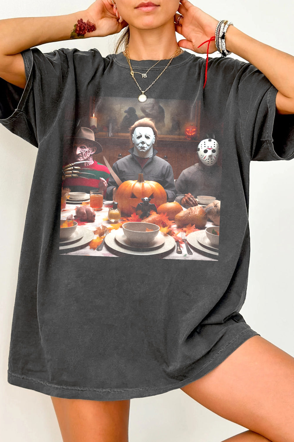 In October We Wear Pink Halloween Michael Myers Tee For Women