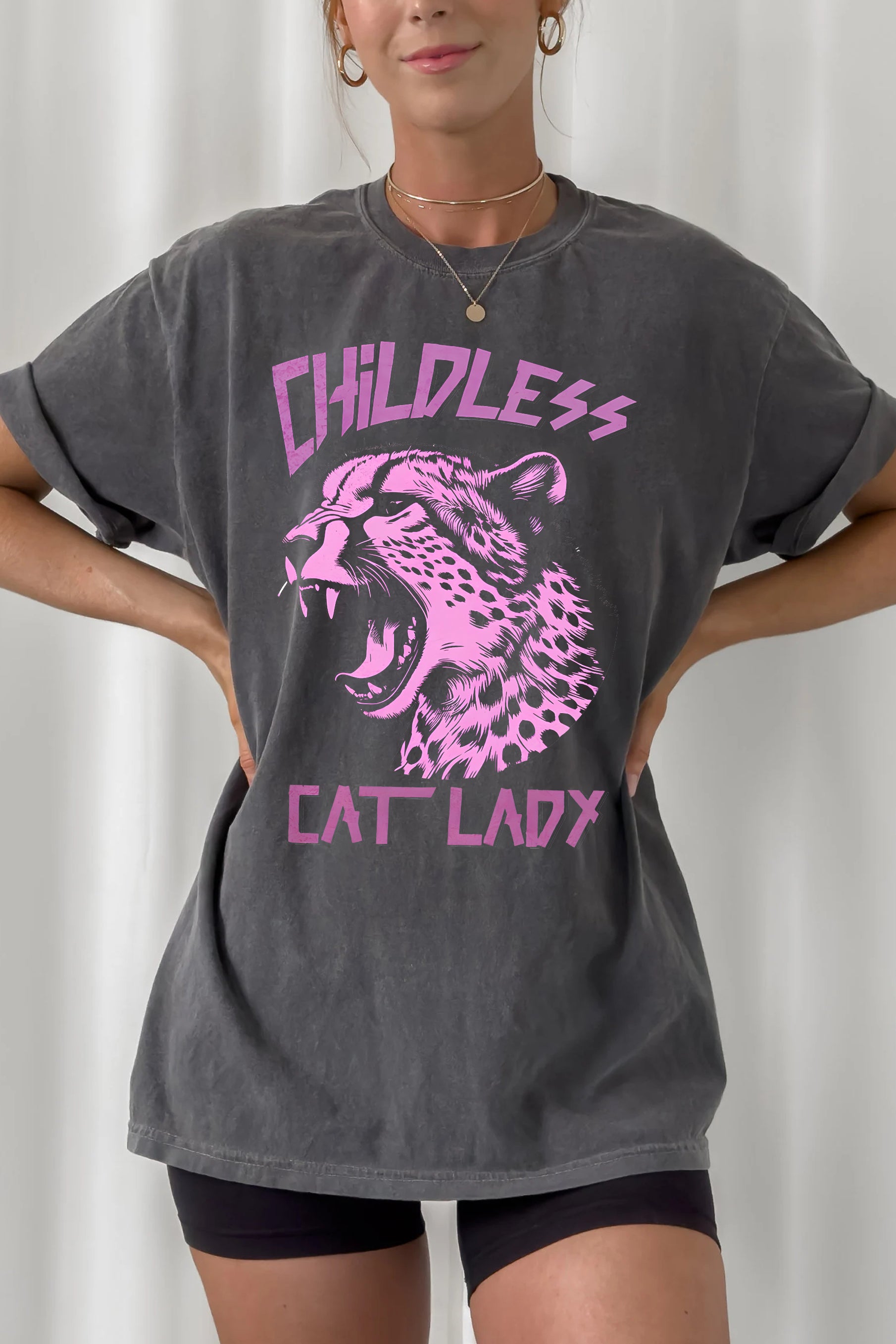 Childless Cat Lady Cheetah Girl Power Tee For Women
