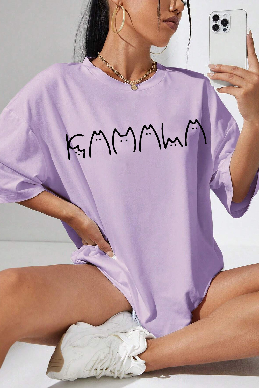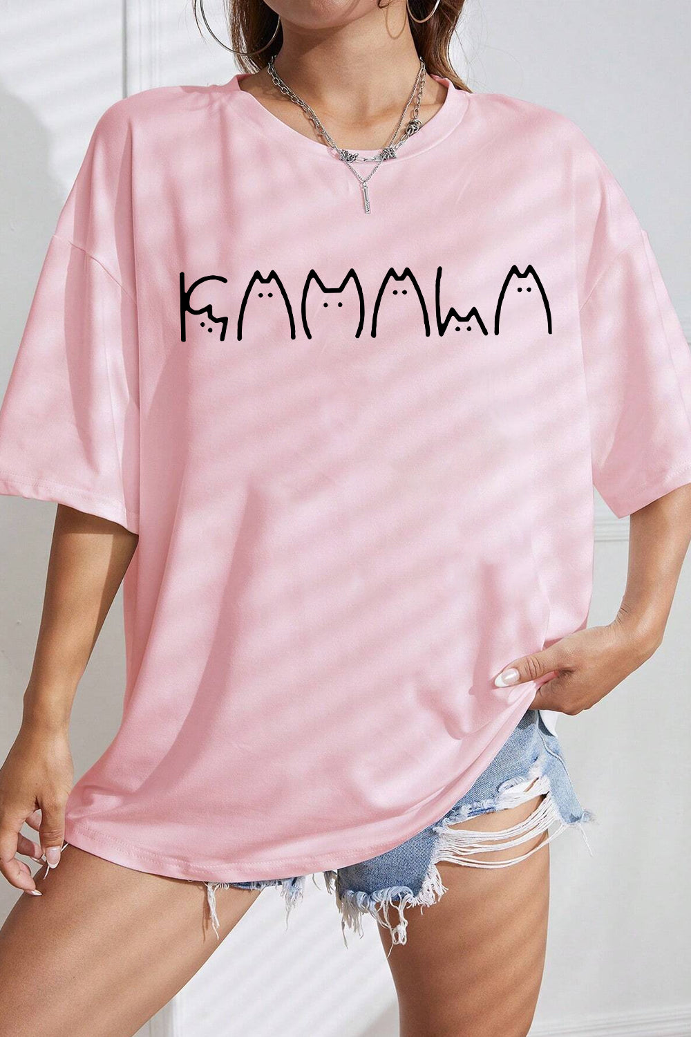 Cute Cat La Printed Tee For Women