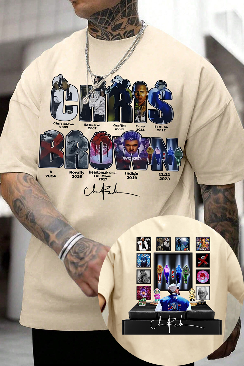 These elements collectively create a tribute or celebration of Chris Brown's career and achievements. The image contains several elements related to Chris Brown: