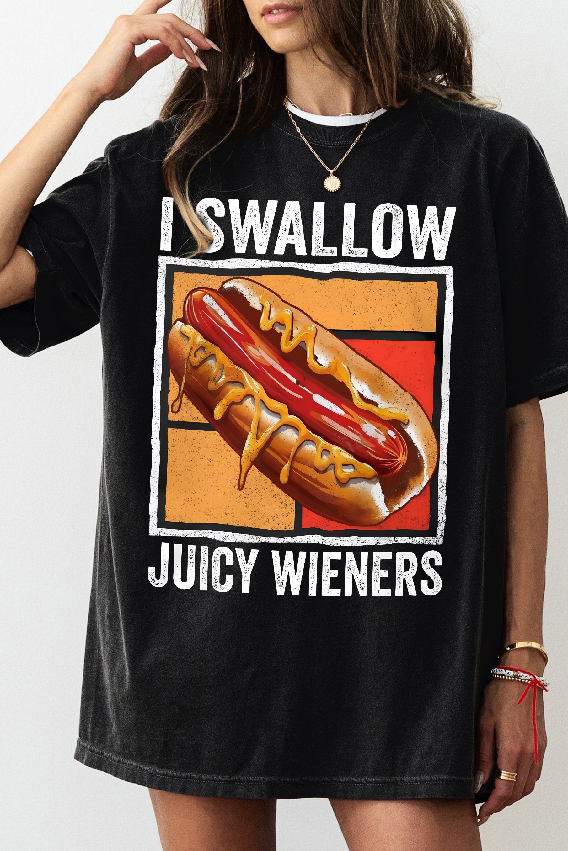 I Swallow Juicy Wieners Funny Sausage Tee For Women