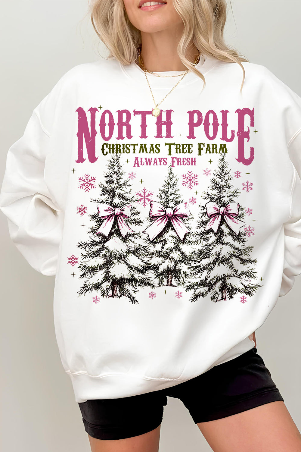North pole Pink Christmas Coquette bow Sweatshirts For Women